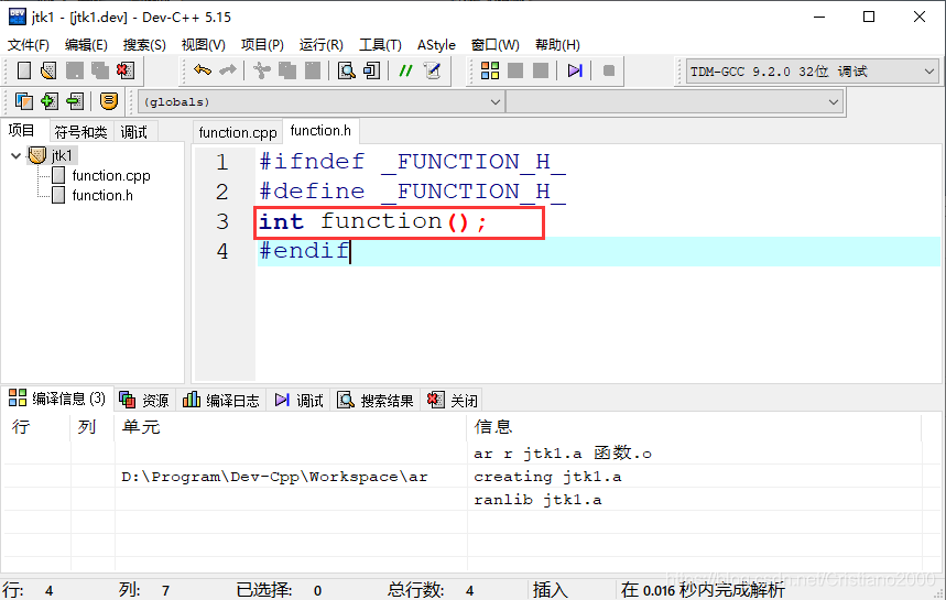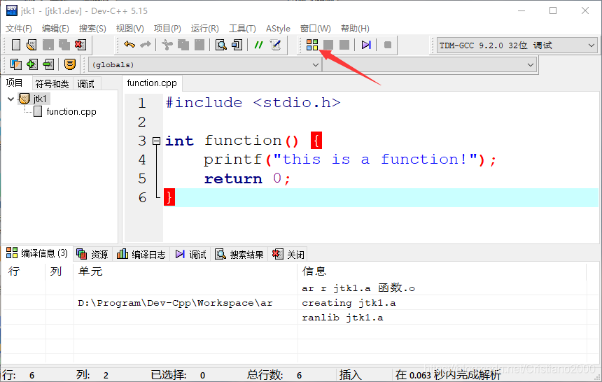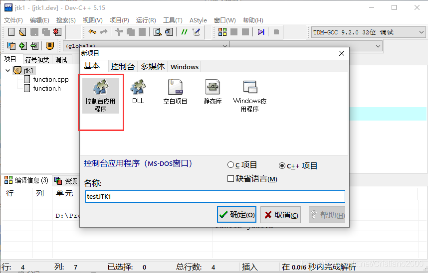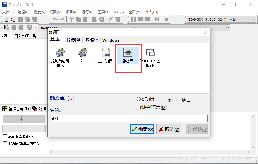 2.1 在dev c++中创建新的静态库项目