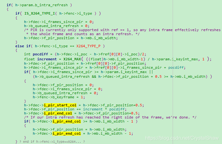x264_encoder_encode:根据i_poc和i_keyint_max计算intracoded regions。计算intra编码的start和end宏块ID索引。