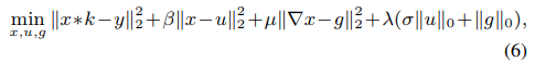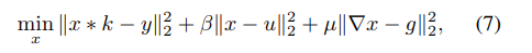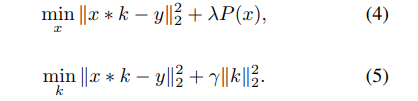 其中,y为模糊图片,k为模糊核,*为卷积操作,γ和 λ 为权重。上式等价于解以下两式子: