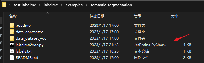 在使用labelme标注数据之后,生成了json文件。在利用json文件生成可用于训练分割模型的voc或者coco数据集时,可以使用labelme中自带的示例文件labelme2voc.py,如下