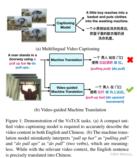 VATEX是一个包含约41250个视频剪辑的大规模数据集,和 82.5 万中英文视频描述,其中包括超过 20.6 万描述是中英平行翻译对。每个视频片段的持续时间在10秒之间,每个片段手动注释10个英文字幕。