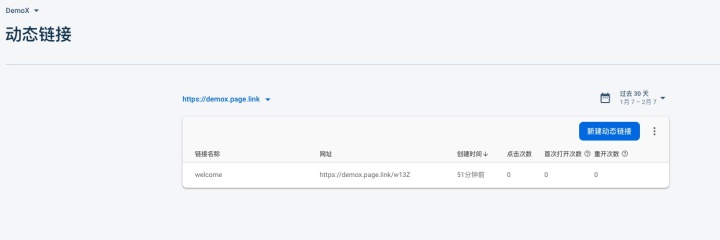 控制台上动态链接的网页,蓝字部分的https://demox.page.link,叫做动态链接前缀。深链接不可见,动态链接里隐藏着深链接,在代码的监听回调里才能取得deepLink(深链接)。深链接必须是合法网址形势,参考;https://support.google.com/firebase/answer/9021429