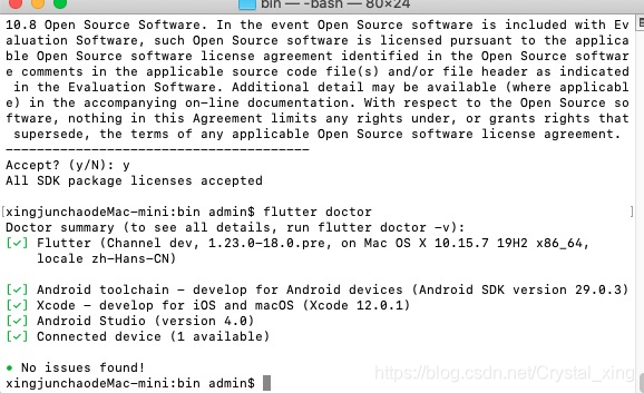 如果flutter doctor的检测项没有红叉就可以创建Flutter新项目了。此次执行flutter doctor是临时环境执行的命令,为了方便最好配置Flutter的环境变量,不然以后不能直接运行flutter doctor。