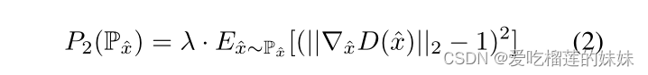 且发生器使Exf ~ Pθ[D(xf)]最大化。他们表明,如果D(x)是K-Lipschitz,则该临界为生成器提供了一个有用的梯度。在他们的原始论文中,他们通过将鉴别器的权值剪辑到区间[- c, c] (WGANclip)来加强Lipschitz连续性,但后来通过添加梯度惩罚项得到了更优雅的解决方案