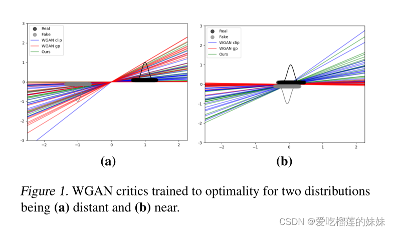 用这种损失训练出来的判别器对距离递减的分布表现出稳定的梯度(图1)。
