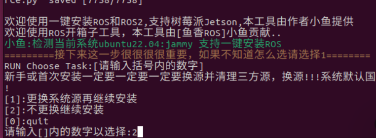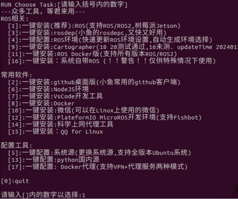 Desktop 版 (推荐)包含: ROS, RViz, demos, tutorials。base版仅包含:Communication libraries, message packages, command line tools.。不包含 GUI tools。(新手直接选桌面版) 这里选 1,,接着等一会