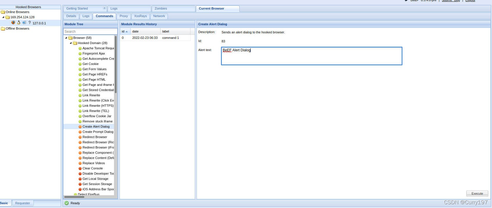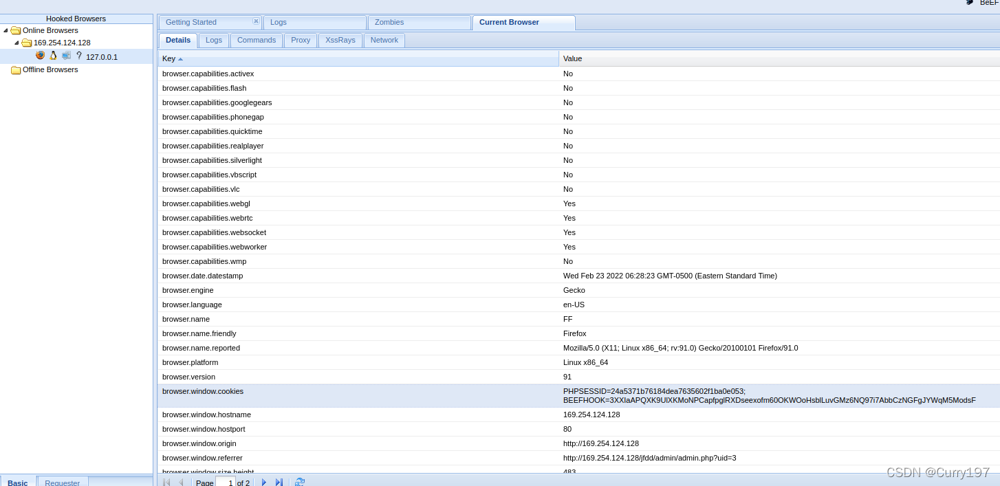 然后即可在beef-xss进行攻击,查看信息等