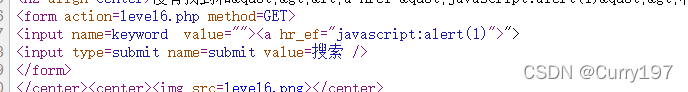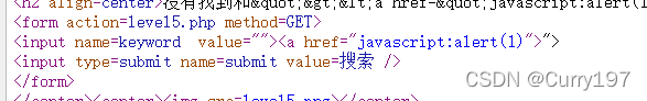 构造如下图:先闭合<input>标签在写入<a>标签,那么input标签剩下的">点击即可跳转到js代码
