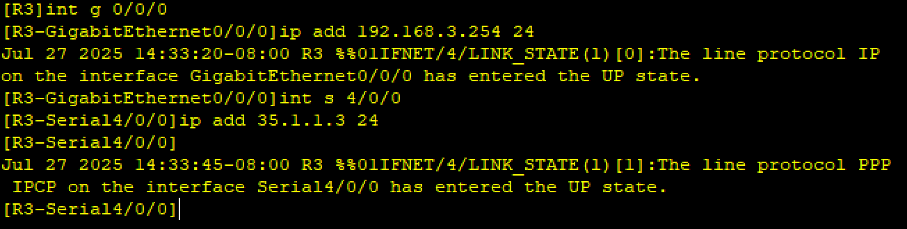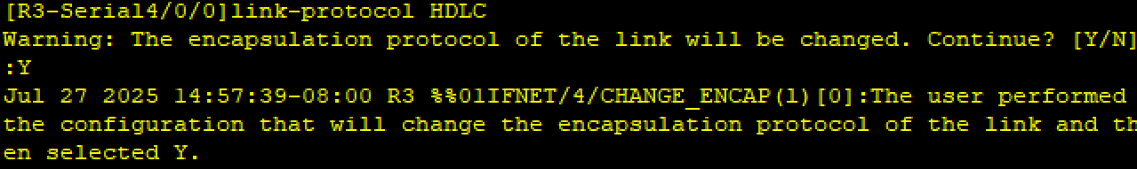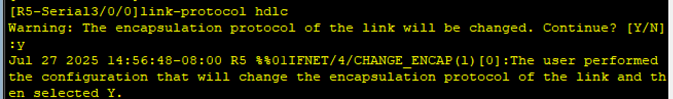 在 R3 和 R5 对应互联接口,手动设置链路协议为 HDLC。