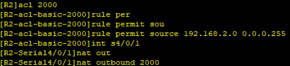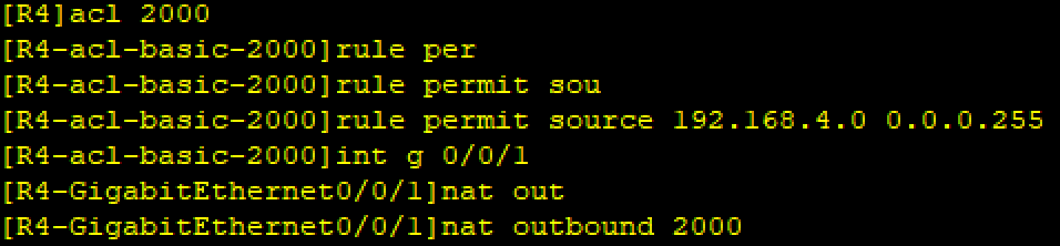 - 在 R1 至 R4 上,利用 ACL 2000 匹配内网需转换的流量。