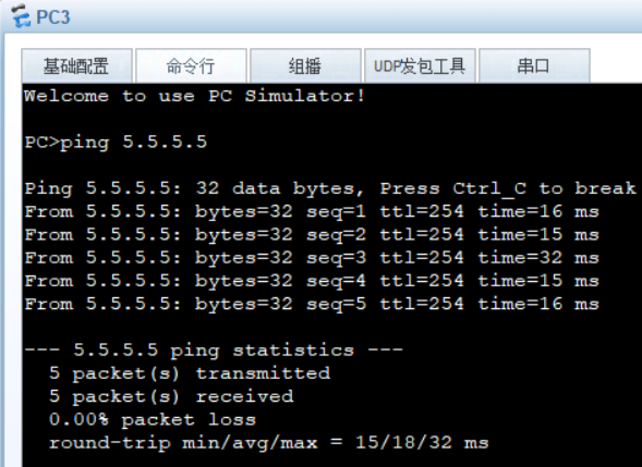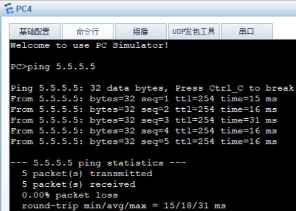 - 测试:验证所有 PC 能否通过 NAT 转换,成功访问 R5 的环回地址。