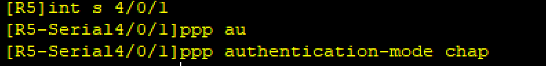 进入对应连接 R5 的接口,开启 PPP 验证,指定用 CHAP 方式验证。