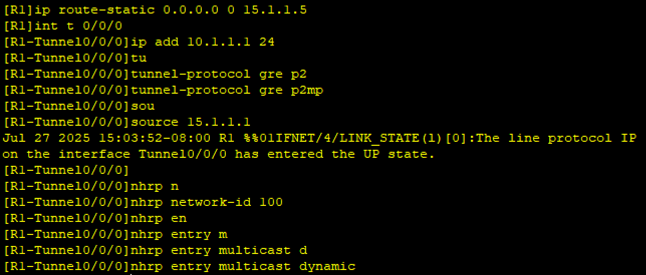 - 开启 NHRP 伪广播功能,让广播类协议可在隧道内传递。