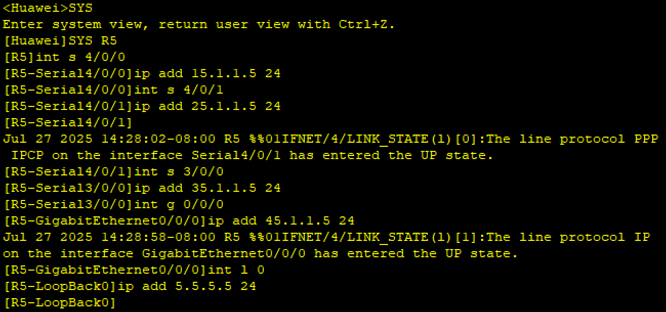 1、R5为ISP,只能进行IP地址配置,其所有地址均配为公有IP地址