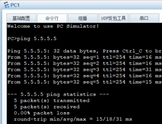 - 配置 NAT 技术,实现内网 PC 访问 R5 环回地址(公网可达需求)。
