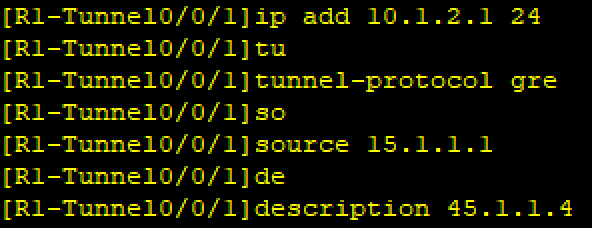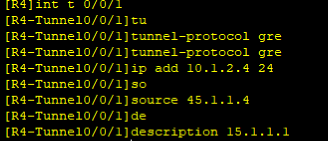 在 R1 上新增隧道,与 R4 搭建 GRE 隧道,实现专属通道互联。