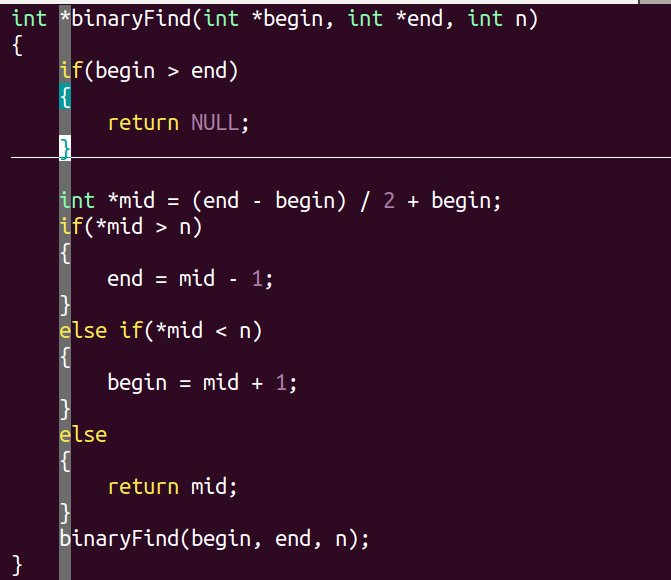 5.int *binaryFind 为指针型函数,返回值为指针。