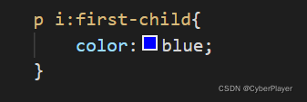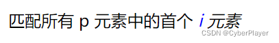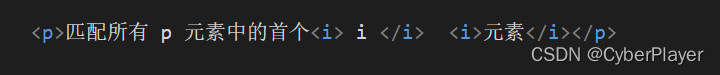 在下面的例子中,选择器匹配作为另一个元素的第一个子元素的 <p> 元素中的所有 <i> 元素: