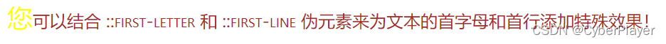 注意:::first-line 伪元素只能应用于块级元素。