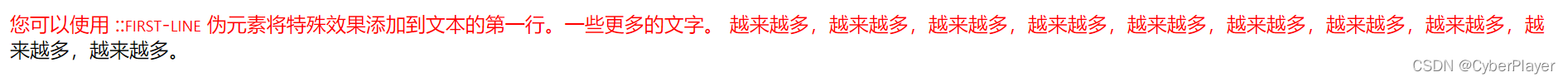 ::first-line 伪元素用于向文本的首行添加特殊样式。