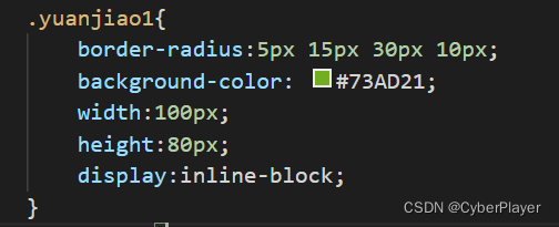 四个值 - border-radius: 15px 50px 30px 5px;(依次分别是:左上角、右上角、右下角、左下角):