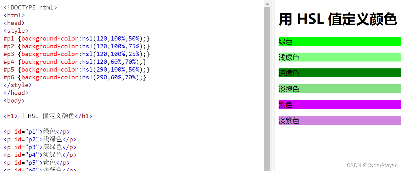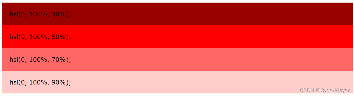 HSL 颜色值是这样规定的:hsl(hue, saturation, lightness)。