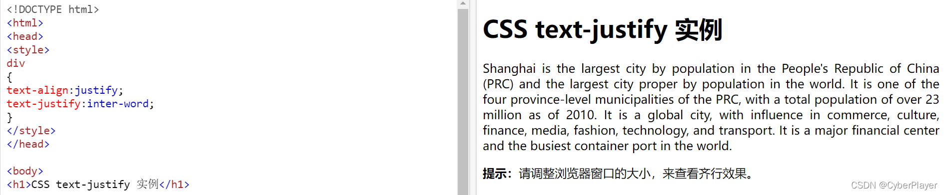 CSS text-justify 属性