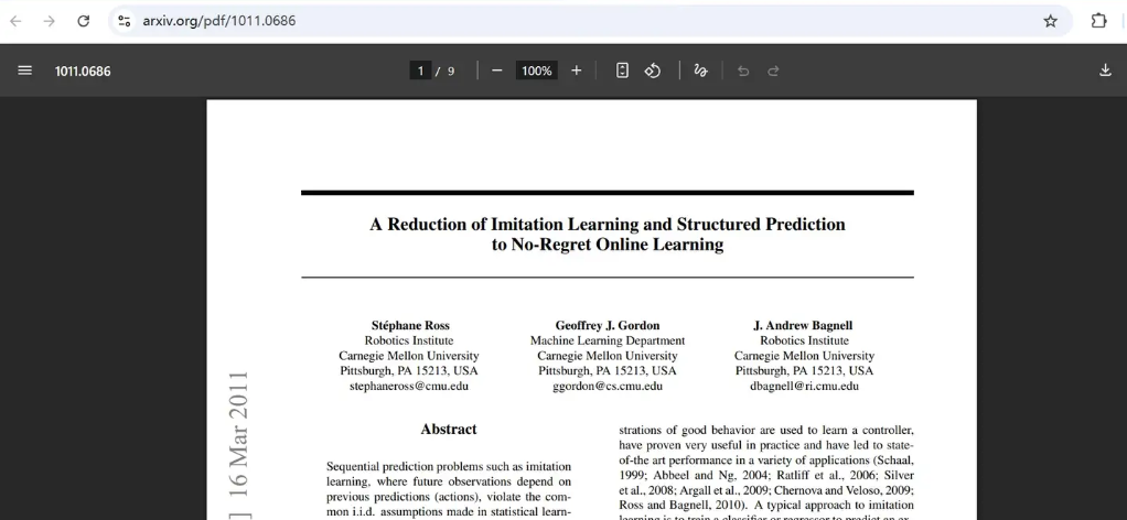 Dagger(2010):A Reduction of Imitation Learning and Structured Prediction to No-Regret Online Learning (Dagger:Dataset Aggregation 数据集聚合)