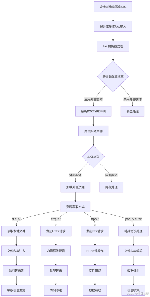 ④在特定条件下,可能实现拒绝服务攻击(例如通过引用消耗资源的实体如“Billion Laughs”攻击)。