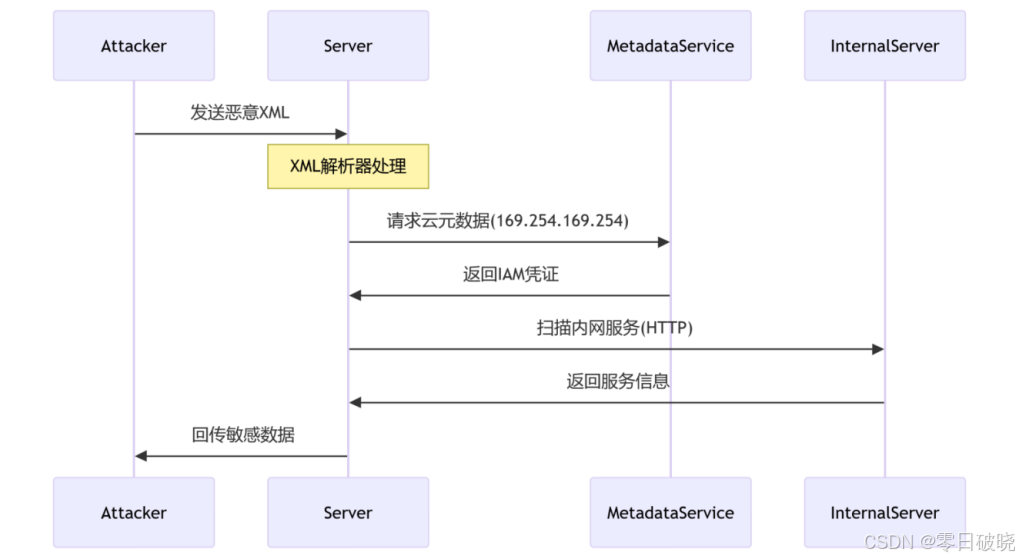 利用容器内未隔离的 XML 解析器访问云元数据服务(如 AWS 的 `169.254.169.254`),窃取 IAM 角色凭证或 Kubernetes ServiceAccount Token。