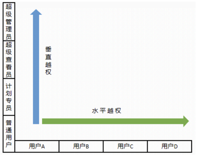 - 垂直越权:你用自己的员工卡设法打开了总经理的电脑。