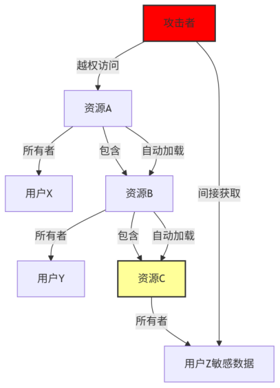 它指的是:攻击者通过一个初始的、有限的越权操作(比如修改一个自己能控制的对象A),触发系统内部的某种关联逻辑或数据同步机制,从而间接获得了对另一个本无权访问的对象B(甚至对象集合)的越权访问能力。