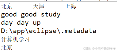 ps:最后\r这里应该覆盖当前行的开头,输出“北京机学习”才对,不知道为什么在eclipse中直接换行了。