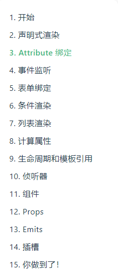 互动课程:https://cn.vuejs.org/tutorial/#step-1