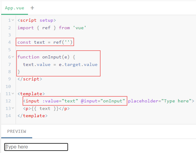 <input :value="text" @input="onInput">
