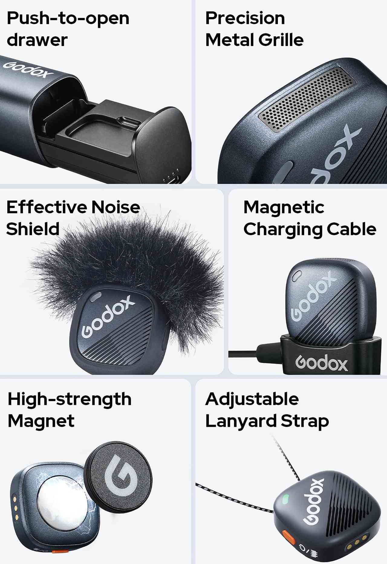 Cube-S 的优势之一在于其多功能性。这款麦克风配有各种配件,包括额外的磁性夹子和噪音屏蔽,使其能够适应不同的录音环境。此外,Godox MIC 应用程序可远程控制增益和监控等关键设置,让用户无需不断与麦克风本身交互即可微调音频。
