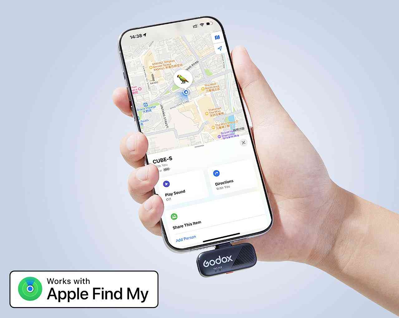 对于那些嵌入 Apple 生态系统的用户,Godox 集成了多项功能,使 Cube-S 无缝契合。它已通过 MFi 认证,可确保 iPhone 和 iPad 的可靠性能。更有趣的是它加入了 Apple Find My 支持——考虑到麦克风的体积很小,这是一个特别贴心的设计。放错这么小的东西很容易,但由于这种集成,找到 Cube-S 就像追踪丢失的 AirPods 一样简单。但是,此功能仅限于 Cube-S Kit 2,其中包括 2 个麦克风和 1 个接收器以及充电盒。