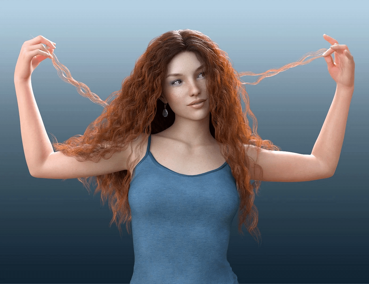此外,我们将添加此头发,添加一个姿势,并包括包括背景在内的背景-还请查看我们的顶级游泳池3D模型文章。完成所有这些操作后,我们得到以下渲染,这表明衣服重力仍然没有应用。