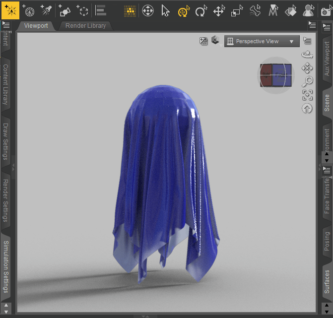 唯一剩下的就是按Simulate。 Daz Studio将模拟从衣服的基础姿势到最终选择的姿势的所有步骤。在这些步骤中,它考虑了衣服的重力和物理特性。在这里,我们可以体会其中的区别。