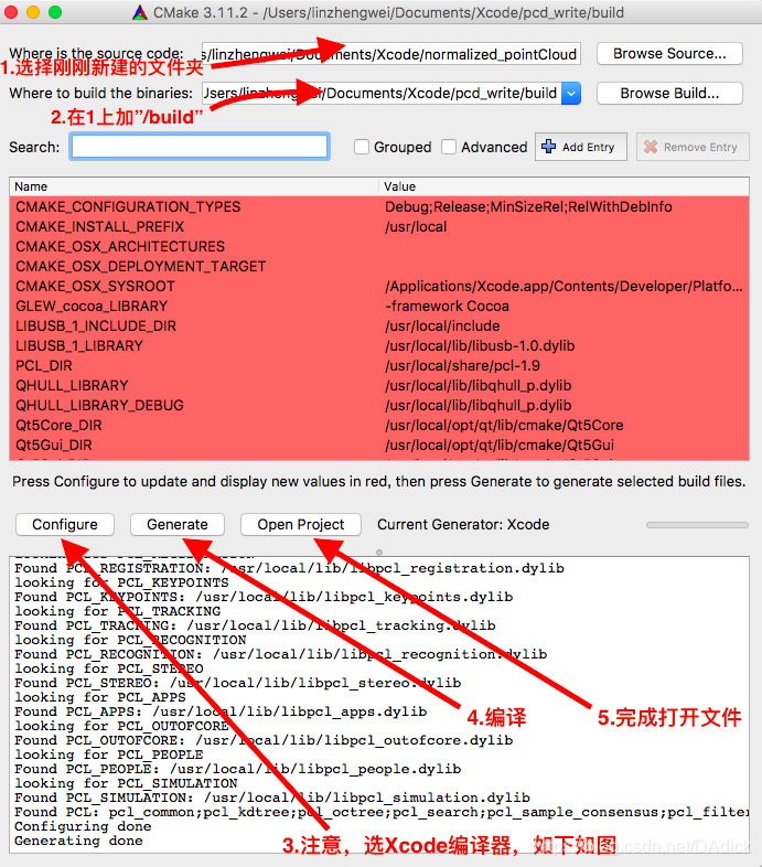 下面进行更简单的生成Xcode的pcl项目。