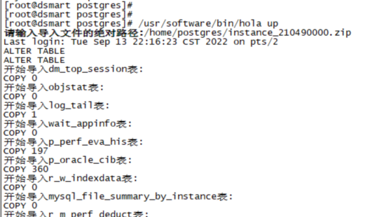 我们可以把这个文件传输到目标D-SMART系统上,存放在任意目录下。然后使用./hola up导入该数据。