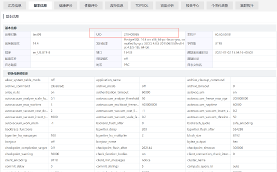 于是想把14号早上9点后面的40分钟数据发送给远程的专家,让专家帮我们分析一下系统存在的问题。于是我们首先找到这个数据库实例的UID: