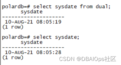 如果说起Oracle的兼容性,我们首先想到的就是dual, 于是我执行了一个select sysdate from dual;果然是可以执行的,同时,与PG兼容的selecte sysdate;命令也可以同样执行。这是一个很不错的特性,今后应用迁移可能会比较方便。
