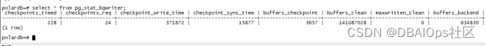 昨天下班前我做了一次系统压测,可以看出,在压测的高峰期,BGWRITER的脏块写入比例还是不高,大约在60%多,不过大多数情况下,BGWRITER的脏块写入比例都接近100%,说明PolarDB的这个改进还是有效的。
