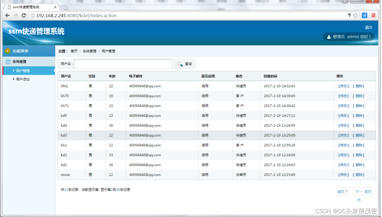 该系统用spring mvc和MySQL实现了快递管理系统。快递管理系统有着很好的应用前景,随着计算机技术和网络技术的发展,它的功能将会得到不断的发展和完善。本系统可以根据实际应用的具体情况,适当加以修改,以便更好应用。本系统操作简单,灵活性好,系统安全性高,运行稳定。本文详细介绍了快递管理系统开发和设计的全过程。
