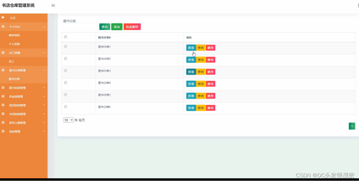 图书分类管理:通过列表可以获取图书分类等信息,进行修改或删除操作