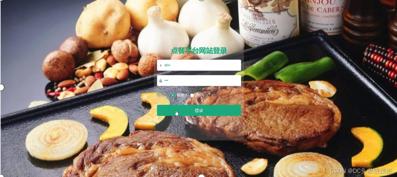 管理员登录,通过填写用户名、密码、角色等信息,输入完成后选择登录即可进入点餐平台网站,如图5-1所示。