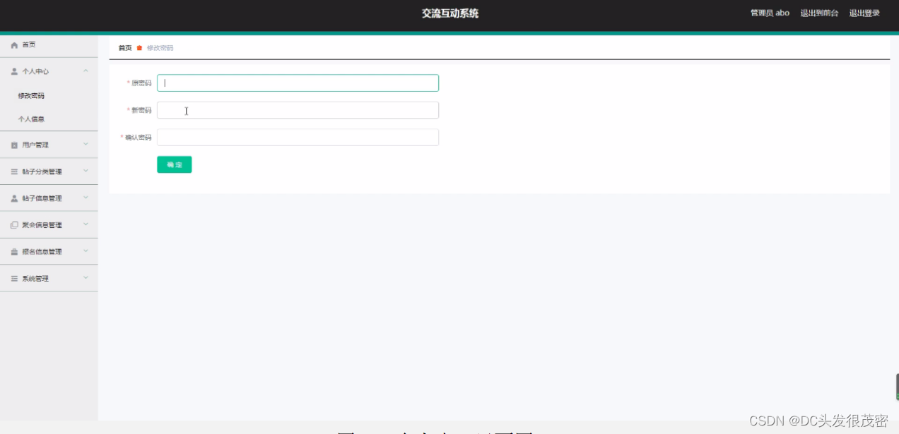 管理员对个人中心查看原密码、新密码、确认密码等信息进行详情、删除、修改操作。个人中心效果图如图5-3所示。
