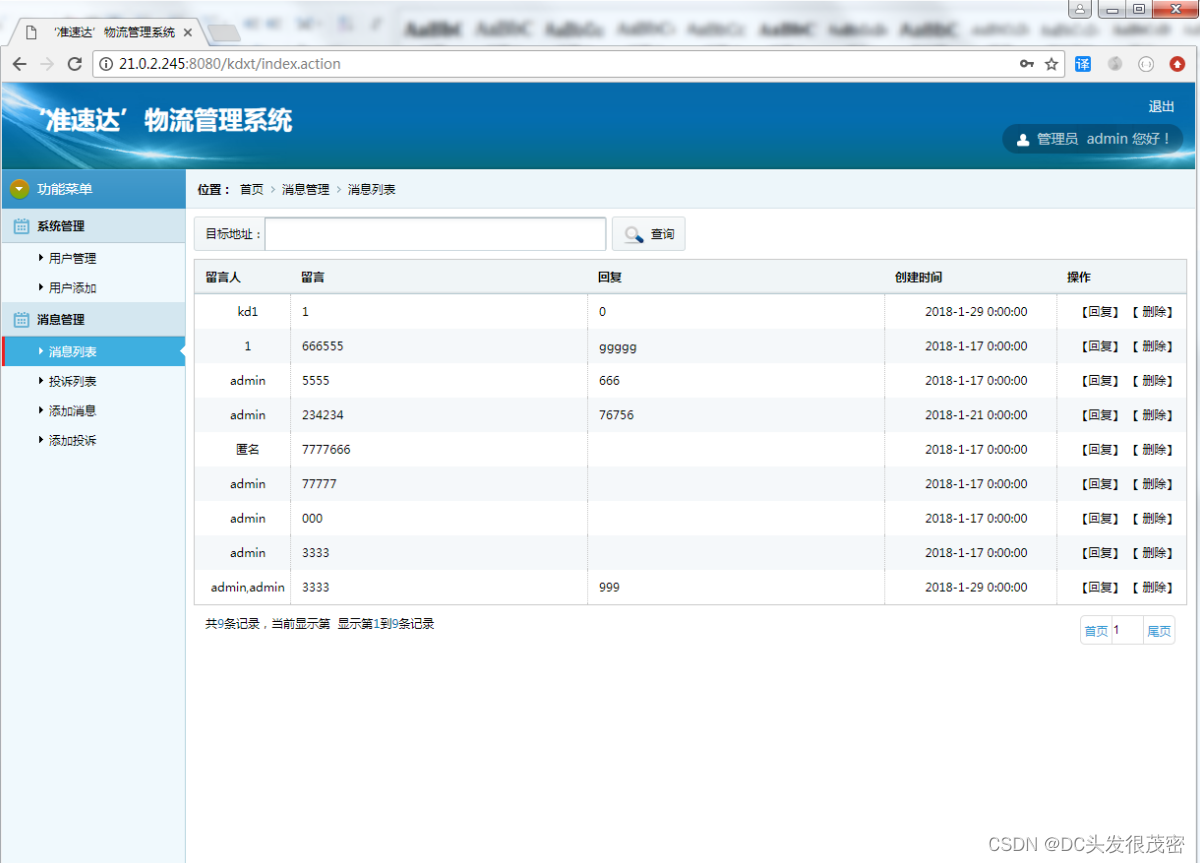 留言界面主要完成的工作是把各个业务口的各种留言信息汇总上来。